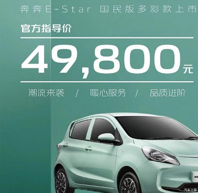 目前奔奔E-Star有多款车型在售,售价区间为2.98-7.48万元。根据车型不同,奔奔E-Star有磷酸铁锂和三元锂版本可选,并且有150km、301km和310km三种续航里程版本可选;该车全系动力相同,最大功率55kW,峰值扭矩170N・m。