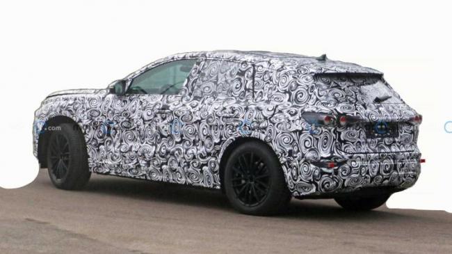 车身侧面,虽然伪装隐藏了几乎所有细节设计,但是整体轮廓看上去相比汽油版的Q5,其驾驶室更加靠后,车顶线条也略微倾斜,尾部整体设计感看起来非常厚重,但总体看上去动感十足。车尾灯组还使用着测试用的代替灯组,所以我们不能确定这就是最后的造型。