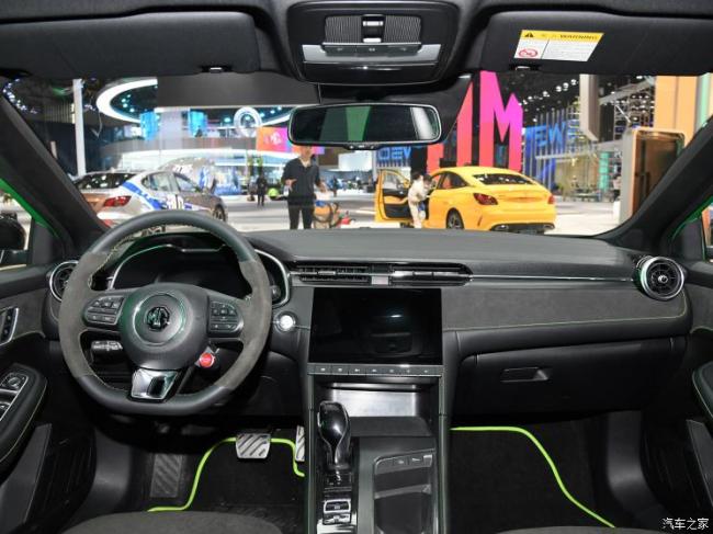 内饰方面,新车设计改变不大,但在中控功能台和座椅上增设了Alcantara材质,四周则采用了真皮,整体设计提升了乘坐舒适感。三辐式多功能方向盘延续了名爵6的设计,由于在三点和九点位置上采用了翻毛皮包裹,避免了驾驶员在激烈驾驶下的打滑失手。除此之外,车内的中央扶手、饰板等多个部件也采用了相同的翻毛皮材料包裹。