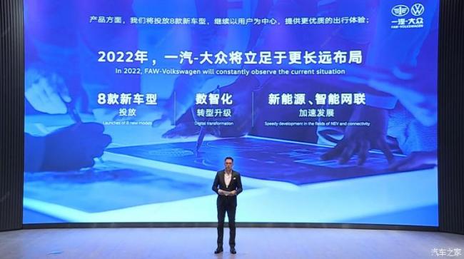 [本站 资讯] 1月17日,一汽-大众新闻年会在长春举行,通过回顾2021年的发展概况以及经营业绩,一汽-大众在本届会议上提出了2022年的新发展目标,将进一步推动数智化转型升级,计划投放8款新车型。